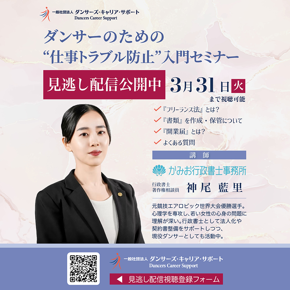 ダンサーが活動を安心して続けるために知っておきたい“仕事の基本”をやさしく解説していただきました。