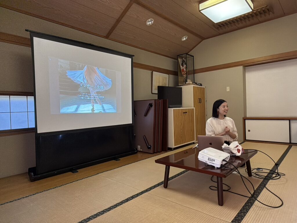 第1部では、ダンサーにとっての生理との向き合い方や基礎知識、パフォーマンスにもつながるセルフケアについて解説しました。対話形式での進行により、個々の状況や悩みに寄り添いながら理解を深める時間となりました。